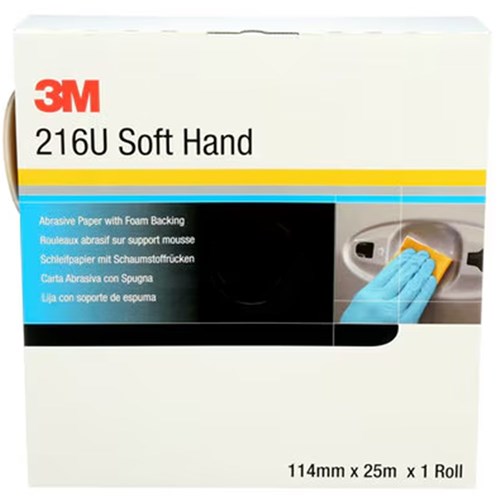 The 3M Soft Hand Abrasive Roll 216U have a soft foam backing (softhand) that allows for more uniform pressure and conformability during the sanding process.