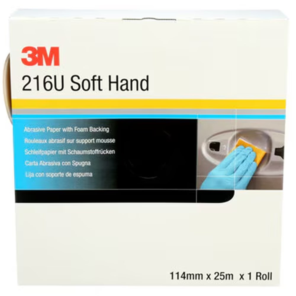The 3M Soft Hand Abrasive Roll 216U have a soft foam backing (softhand) that allows for more uniform pressure and conformability during the sanding process.
