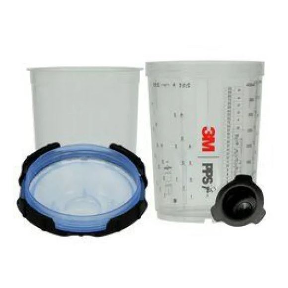 3M PPS Series 2.0 is our next generation, highest performing disposable spray cup system. New quarter-turn lid locking system locks lid to cup and eliminates paint build up and cross threading. Redesigned adapters provide four points of connection from spray gun to lid, improving stability and confidence especially in large applications. Domed lid geometry and a wider fluid spout allows up to 90 mL of material to be held below the filter reducing inconsistent spray due to air-entrapment and sputter. Full-diameter filters are built into every lid for the highest quality filtration; aids with fluid flow. A new reusable hard cup is included in every lid/liner kit. Mixing ratios are printed on each cup and a clear access window allows users to grasp liner while removing the lid, making tinting/refilling easier. Enlarged sealing plugs provide stable base for cups to be placed upside down, keeping filters wet during temporary sealing and protection of coatings not in use. 3M PPS (Legacy) red dispensers can be used with 3M PPS Series 2.0. 3M PPS reduces cleaning solvent consumption by up to 70% and reduces prep and clean-up time by up to 50%; compared to conventional paint cup systems.