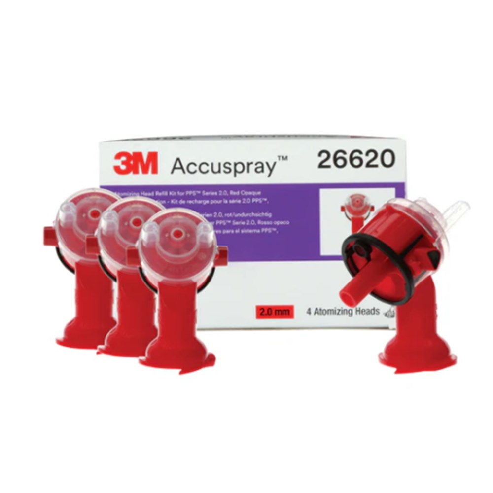 3M 26620 ACCUSPRAY ATOMIZING HEAD REFILL PACK RED 2.0MM BOX/4