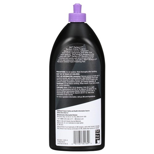 Stop fighting swirls and haze - spend your polishing time perfecting the shine with 3M Perfect-It Random Orbital Polish. It delivers high-gloss, haze, and swirl-free finish with less sling than a rotary tool for easy clean up. It produces high-quality, predictable results thanks to a proprietary combination of advanced abrasives and gloss enhancers. It is part of the easy-to-use 3M Perfect-It? Random Orbital Paint Finishing System, which includes pads, liquids, and tools engineered to deliver high-quality finishes for technicians of all skill levels.