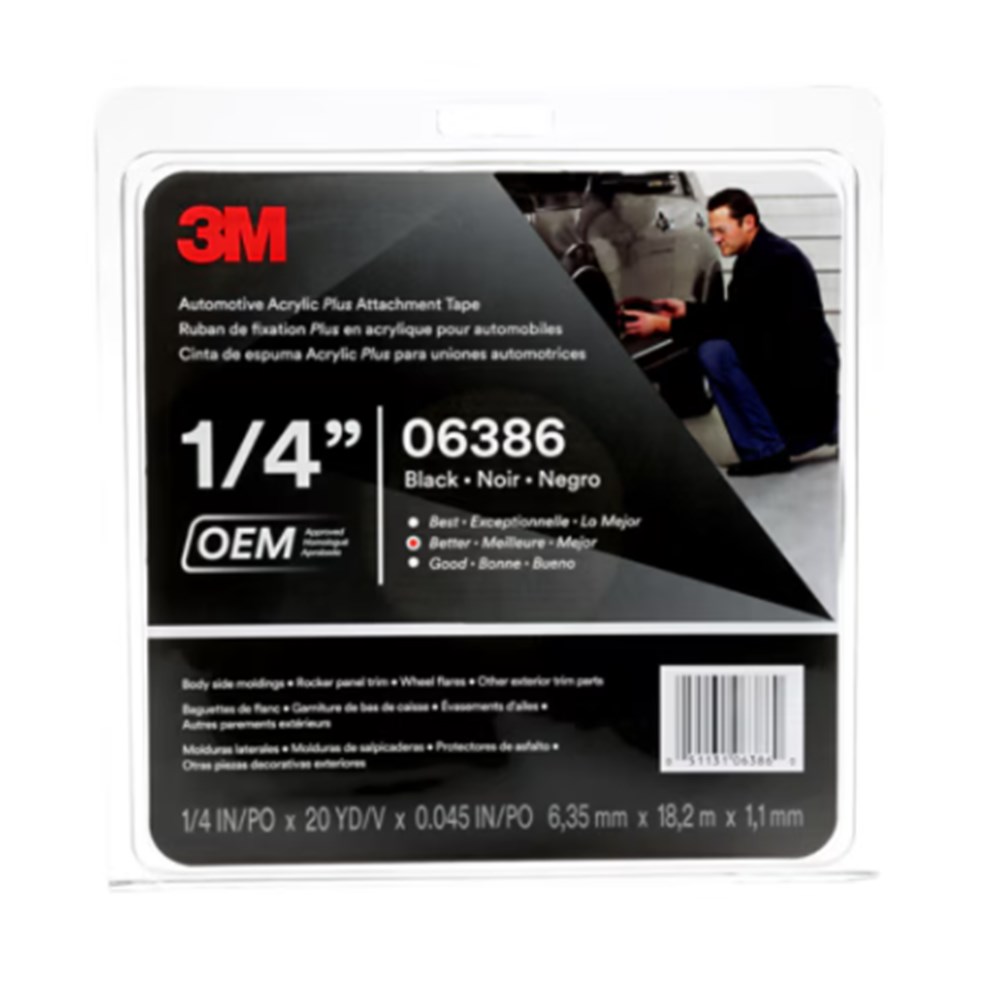 A range of black, high performance, double-coated acrylic foam tapes. These OEM approved tapes are designed for reliable attachment of a wide variety of automotive exterior and interior trim, including body side mouldings, claddings, rocker panel mouldings, wheel flares, bumper trim and most other automotive trim.