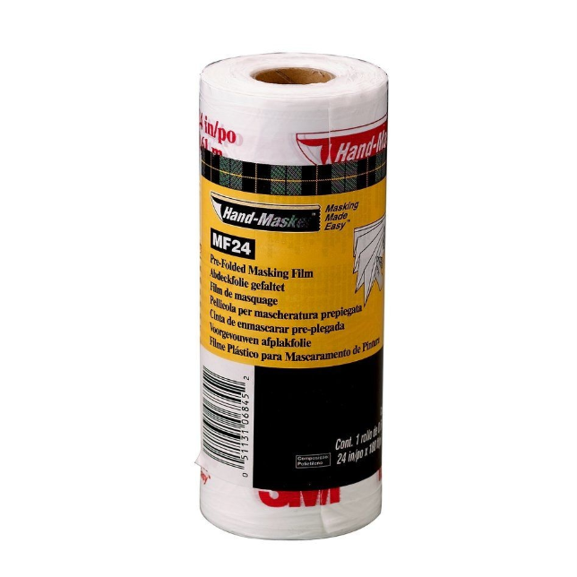 3M Hand-Masker Masking Film Plus (24in x 180ft x .375 mil) Pre-Folded, High-Density, Nonporous film for paint masking and paint overspray protection. Flake resistant for multiple coat use. May be used with lacquers. Product folds out to 24 in.