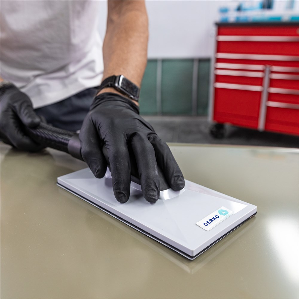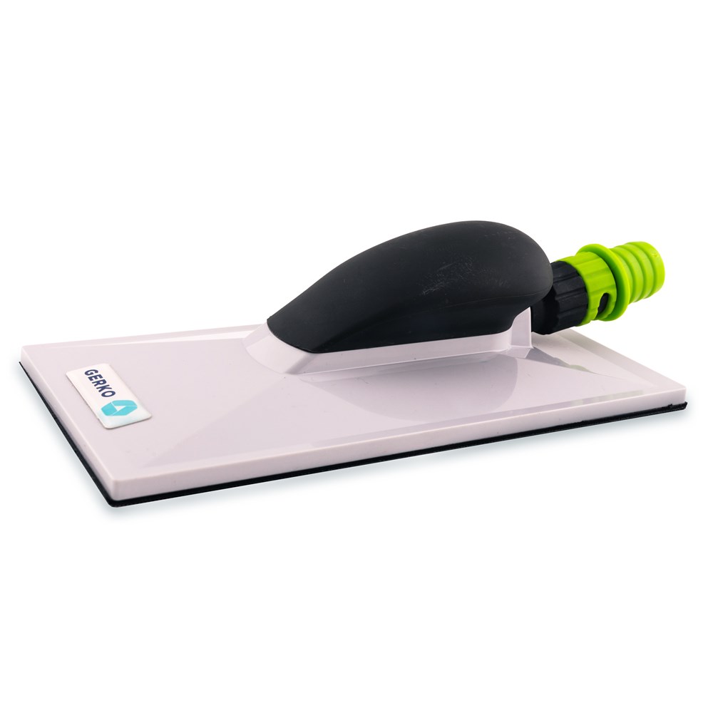 The Gerko sanding blocks feature an ergonomic handle and balanced weight distribution, so you apply equal pressure everywhere while sanding. Thanks to the built-in connection for an extraction tube, your workplace stays neat and dust-free. The smart design with rounded corners makes changing sandpaper quick and easy, ensuring a smooth and efficient sanding experience.