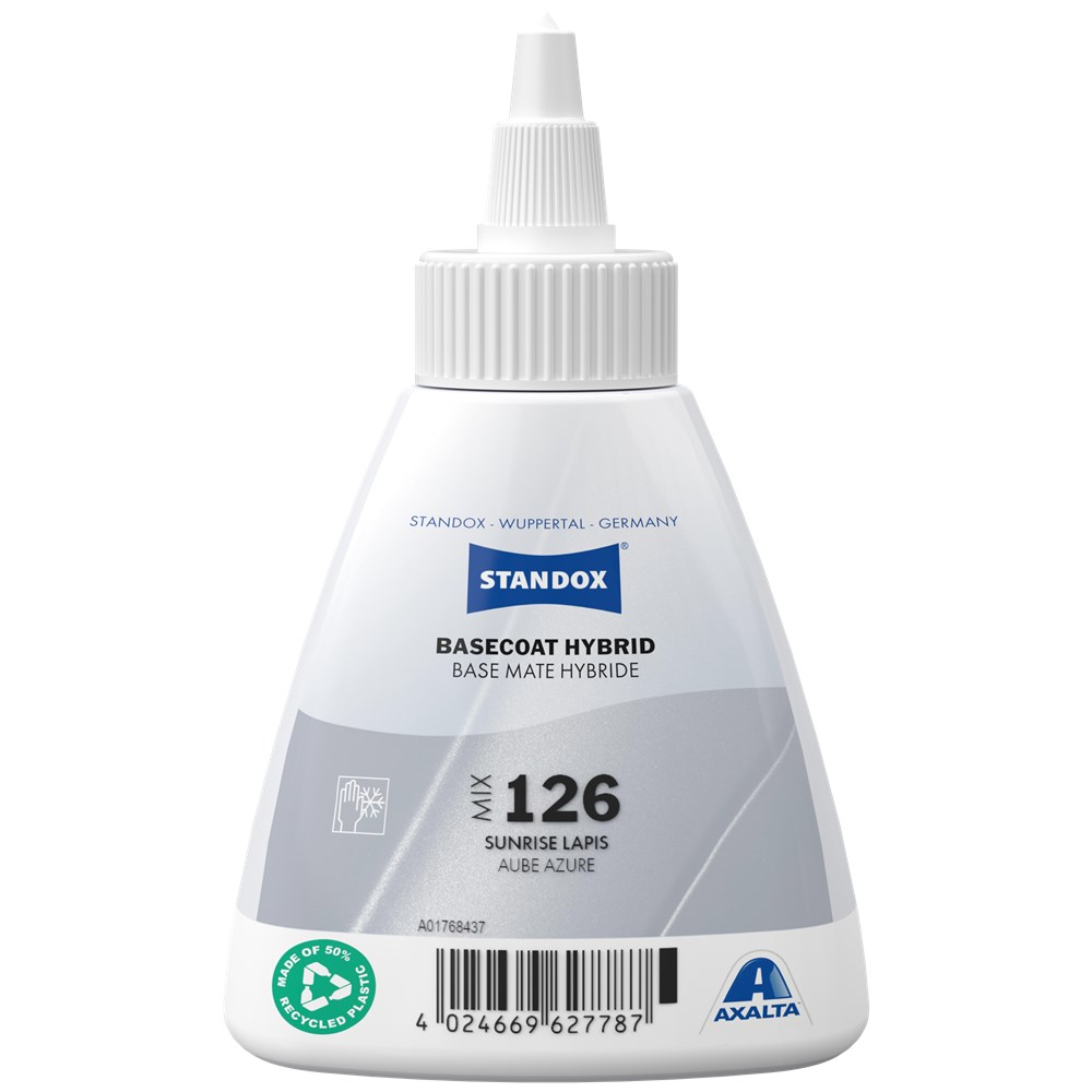 The Standox Standoblue Basecoat Mix 126 Sunrise Lapis 100ml is a specific automotive refinishing paint mixing tint used withn the Standox waterborne basecoat system.