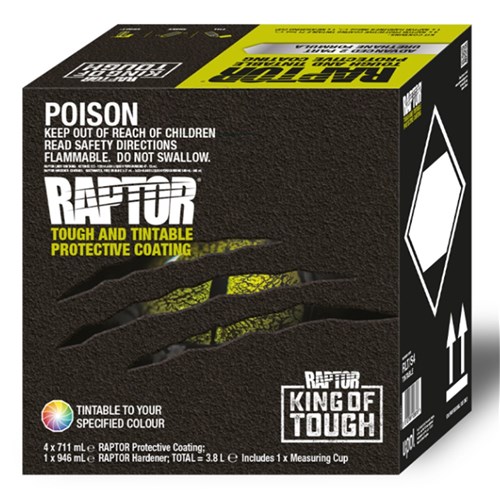RAPTOR Tough and Tintable Protective Coating is a 2K polyurethane coating that provides surfaces with a highly durable protective coating. Available in an easy to use kit, providing a tough, textured finish that performs in all climates, temperatures and environments.