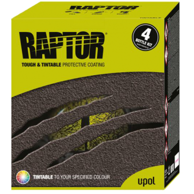 RAPTOR Tough and Tintable Protective Coating is a 2K polyurethane coating that provides surfaces with a highly durable protective coating. Available in an easy to use kit, providing a tough, textured finish that performs in all climates, temperatures and environments.