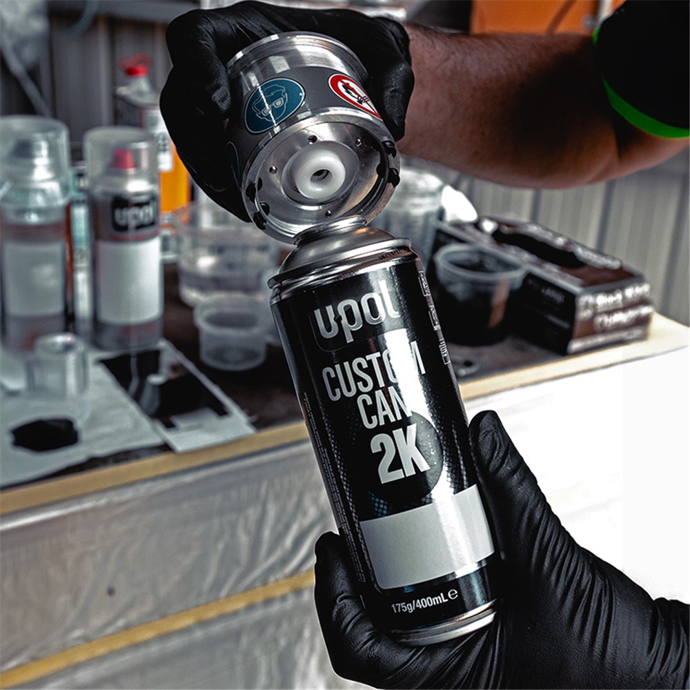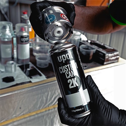 A 2K pre-gassed Custom Can that can be filled with 100ml of a 2K solvent based topcoat. It gives a clog-free, professional, spray gun finish with the convenience of an aerosol.